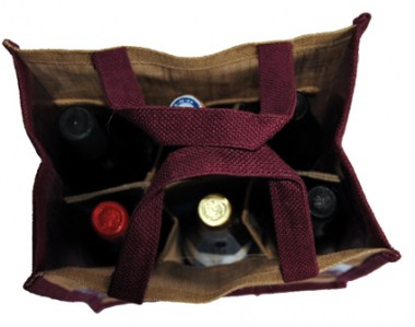 für 6x FlaschenMaterial: veredelte Jute, HolzMaße ca.: H 35cm, B 27,5cm, T 18cm